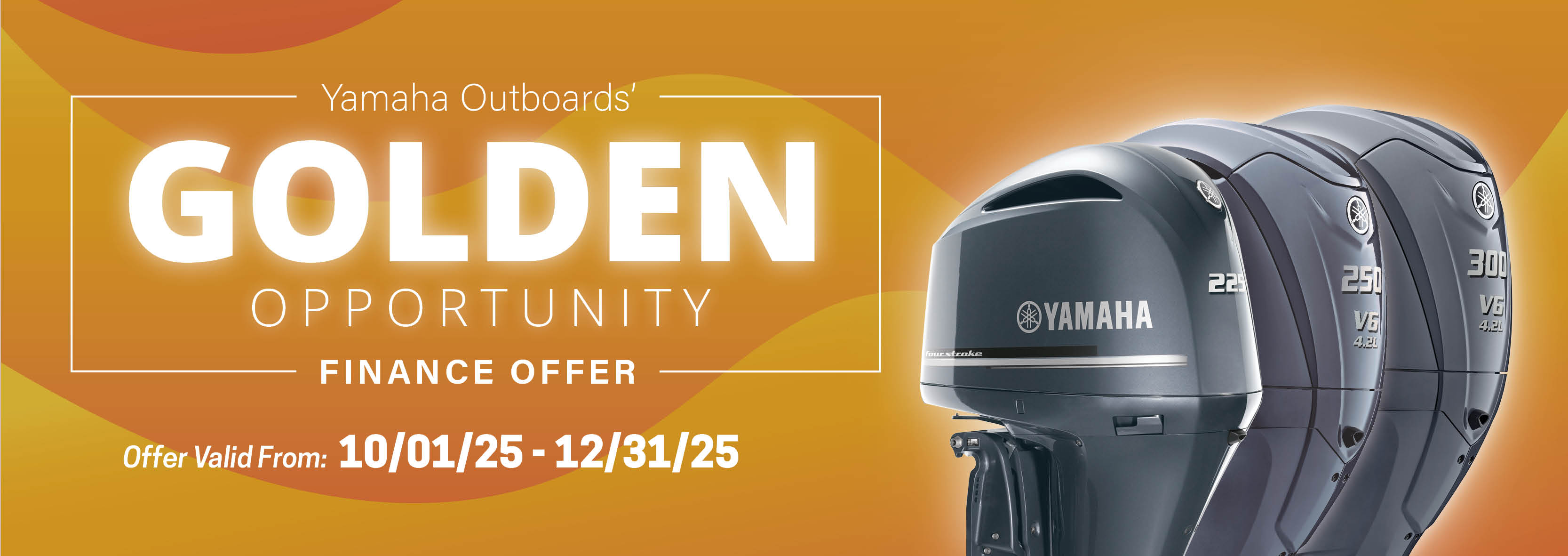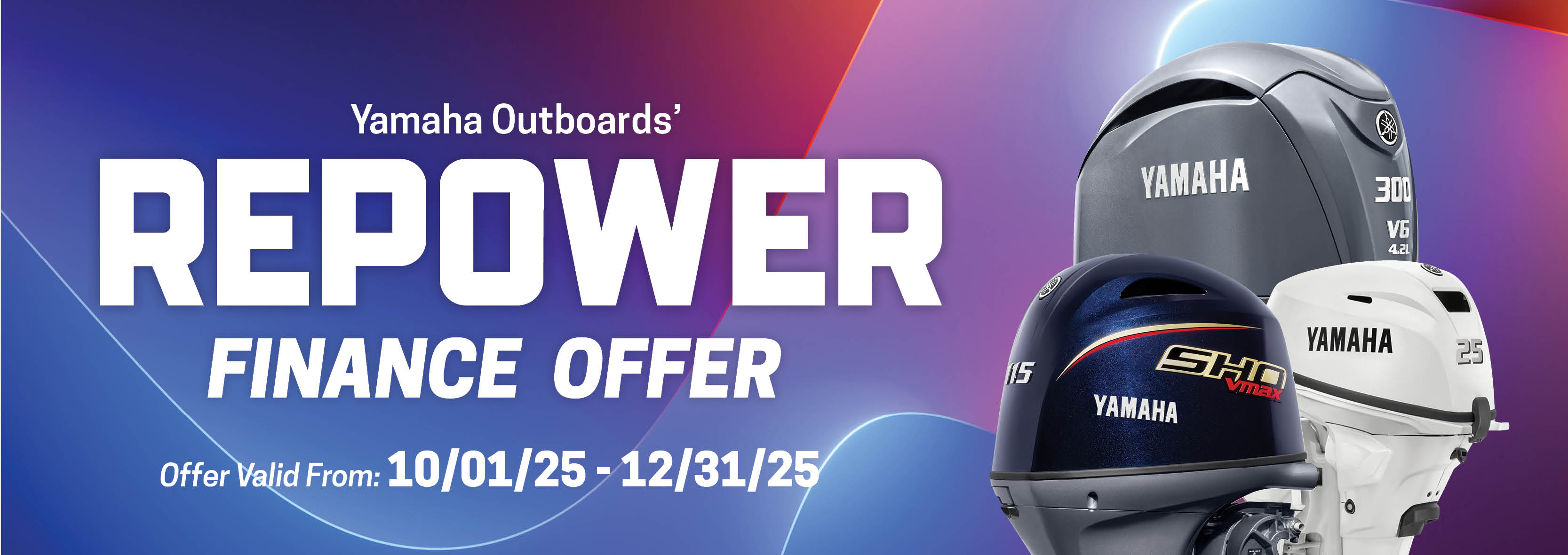 Consumer benefit for purchasing a new (unused, not previously warranty registered) select eligible Yamaha four stroke outboard is based on horsepower as follows: 425 -450 hp is a 24-month Yamaha Extended Service (“Y.E.S.”) contract (choice offered by Florida dealers is a 24-month Yamaha Extended Limited Warranty in lieu of Y.E.S. contract); 30-350 hp is a 36-month Yamaha Extended Service contract (choice offered by Florida dealers is a 36-month Yamaha Extended Limited Warranty in lieu of Y.E.S. contract); and 2.5-25 hp and 150-450 hp is a dealer credit of up to $700, based on hp, toward the MSRP value of goods and/or services purchased, at the authorized participating dealer that sold the outboard, at no extra cost to consumer. To be eligible, outboards must also have been manufactured since January 2018. Promotion is limited to available stock in dealer inventory that is sold, delivered, PDI (Pre-Delivery Inspection) completed, and warranty registered on YMBS by an authorized Yamaha outboard dealer between the dates of October 6, 2025 – December 8, 2025. Any outboard sold, delivered, PDI (Pre-Delivery Inspection) completed and/or warranty registered after these dates is not eligible. No model substitutions, benefit substitutions, extensions or rain checks will be allowed. Outboards sold or provided for commercial, camp, resort, guide, rental, promotional/demo, government agency, competition, tournament or sponsorship use are not eligible. This promotion cannot be used in conjunction with any other Yamaha offer. Some exceptions may apply. Some exclusions may apply in the Yamaha Extended Limited Warranty offered by Florida dealers (as compared to the Y.E.S. contract), such as TRIP coverage. In Florida, Yamaha Extended Service is administered by Automotive Warranty Services of Florida, Inc. 175 W. Jackson Blvd., Chicago, IL 60604 (866) 937-3983 (License #60023). Promotion is only applicable from authorized participating Yamaha Outboard dealers in the U.S.A. sold to purchasing consumers residing in the U.S.A. See authorized participating Yamaha dealer for complete details. Yamaha reserves the right to change or cancel this promotion at any time.